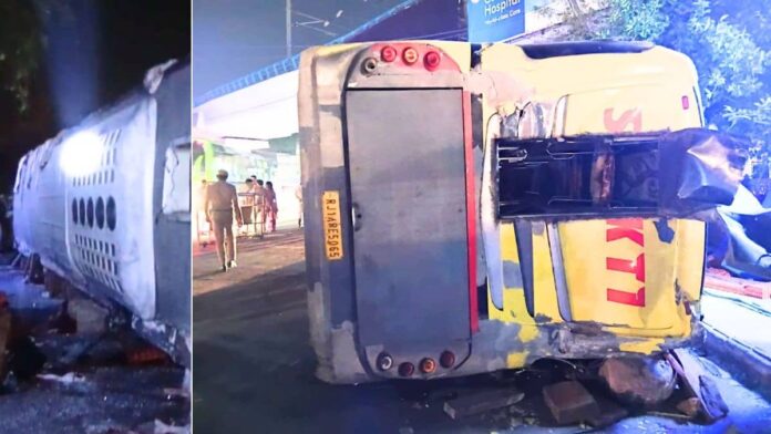 New Delhi: At least two people were killed and several others injured after a double-decker passenger bus overturned near Hanuman Murti Chowk in central Delhi’s Karol Bagh area on Wednesday.According to reports, the bus, carrying around 25 passengers from Jaipur, lost control and