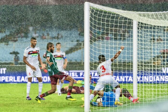 NorthEast’s Alaeddine Ajaraie and Jithin MS paired up from both the wings and gave Mohun Bagan’s defenders a tough time. Ajaraie, the Moroccan attacker, scored the winner against Mohammedan SC in Kolkata. In the post-match media interaction, he had said he wanted to score against Mohun Bagan again, as he had in the Durand Cup final.