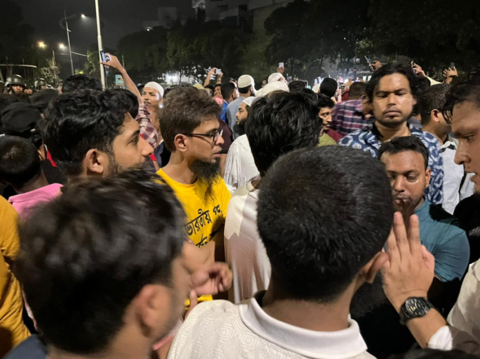 The protesters stood outside the Banga Bhaban and started chanting slogans demanding the Bangladesh President’s resignation.