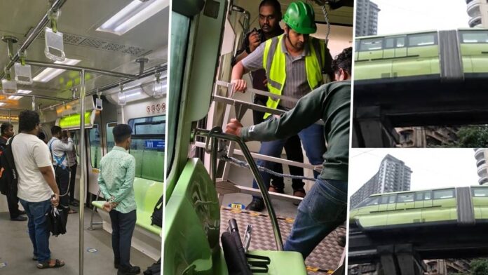 BREAKING: Mumbai Monorail services came to a sudden halt this morning afternoon after a technical glitch. The train was left stranded between Antop Hill and GTB Nagar stations in Wadala. #WATCH | Maharashtra: A monorail comes to a halt in the Wadala area of Mumbai due to technica