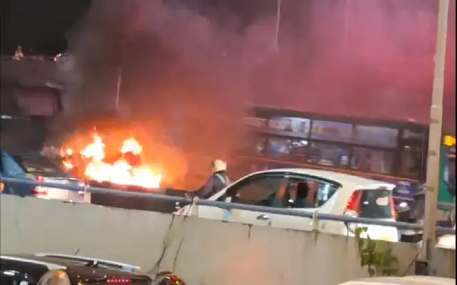 Car Catches Fire on Hebbal Flyover, Disrupting Traffic in Bengaluru
