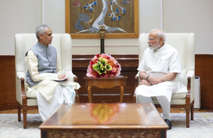 Gujarat Governor Acharya Devvrat met Prime Minister Narendra Modi in the national capital on Wednesday, marking a high-level interaction between the constitutional head of Gujarat and the central leadership.