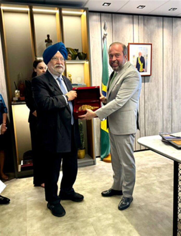 WASHINGTON – India Minister of Petroleum and Natural Gas Hardeep Singh Puri on Saturday said that India and Brazil have reaffirmed their desire to strengthen cooperation between them to usher in various advantages, which include economic growth, by creating jobs in the rural sector and fostering innovation in renewable energy technologies and energy security, by reducing reliance on imports.