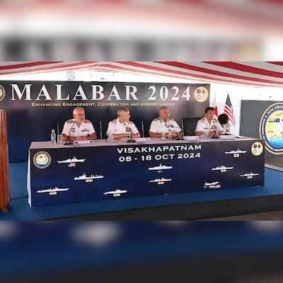 On Wednesday, naval forces from Australia, Japan, and the US joined India for the opening ceremony of the field training exercise Malabar 2024 in Vishakhapatnam | Credit: X/@indiannavy