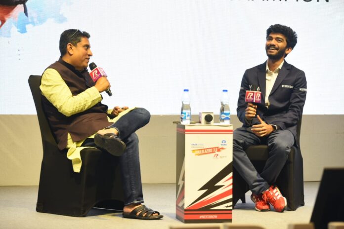 Boria Majumdar in conversation with D Gukesh at the Tata Steel Trailblazers (PC: Revsportz)