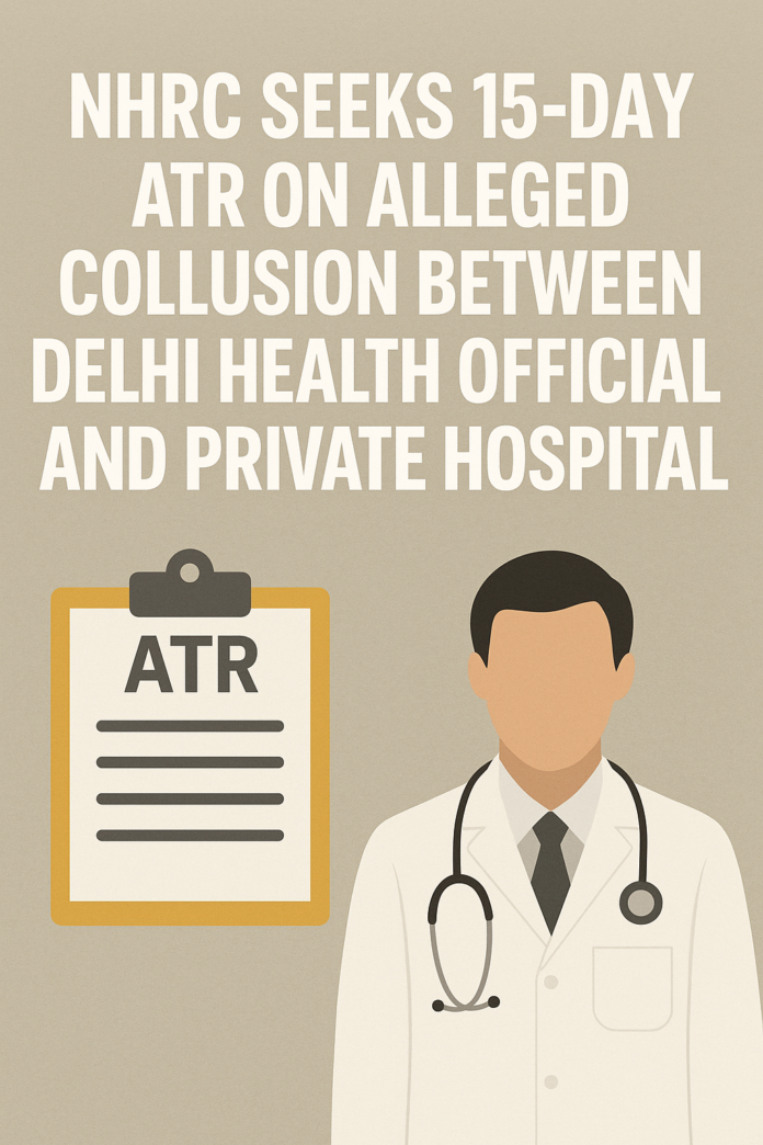 The National Human Rights Commission (NHRC) has demanded an urgent Action Taken Report (ATR) from the Health & Family Welfare Department of the Government of NCT of Delhi after serious allegations surfaced involving a senior government doctor and a private hospital in the capital. The directive follows a detailed complaint filed on November 7, 2025, by Chandni Chowk resident Subhash Chandra Agrawal, who accused Artemis Lite Hospital and officials of the Directorate General of Health Services (DGHS) of collusion, corruption, and human-rights violations.