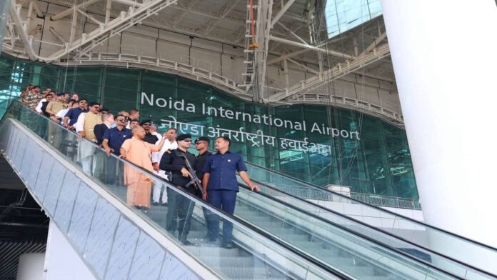 Jewar: Uttar Pradesh Chief Minister Yogi Adityanath inspected the under-construction Noida International Airport in Jewar on Thursday. Union Civil Aviation Minister Kinjarapu Ram Mohan Naidu accompanied Yogi Adityanath for the inspection.During the review meeting, Adityanath poin