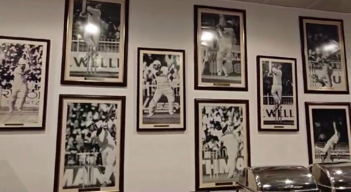 As you turned towards the left side of the room, the walls were adorned with a galaxy cricket stars. There is an iconic image of Kapil Dev, the India skipper, and Viv Richards, the West Indies captain, being pictured together during the toss at the Rothmans Cup in 1985. Beside it is a photo of Lara employing the flick shot.