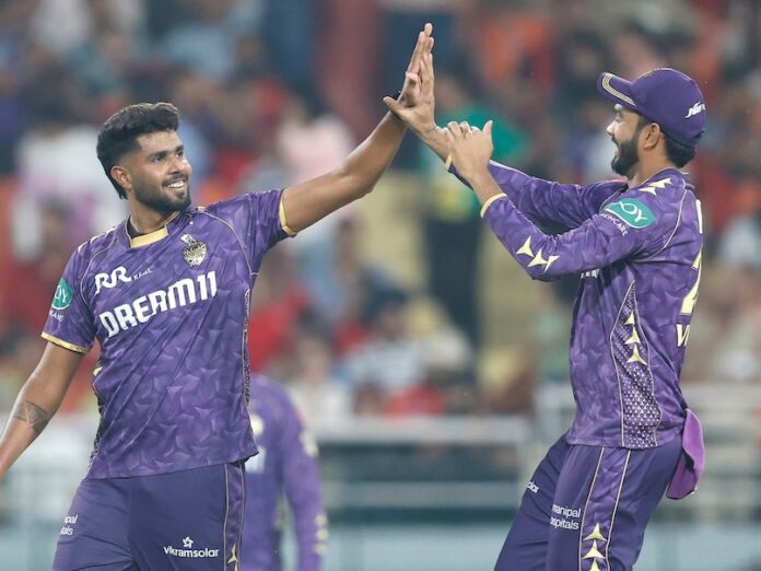 In the ongoing match of the IPL 2025 between Punjab Kings (PBKS) and Kolkata Knight Riders (KKR) at the Maharaja Yadavindra Singh International Cricket Stadium, Mullanpur. Harshit Rana set the stage on fire with the blistering powerplay performance, taking the three crucial wickets for that destroyed the top order of PBKS . Supported brilliantly by Ramandeep Singh in the outfield, the Rana-Ramandeep duo delivered a match defining spell that left fans at the edge of their seats.