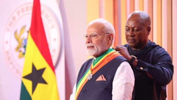 PM Modi conferred Ghana’s national honour Latest NewsBreaking NewsTop StoriesNational Published: July 3, 2025 Reading time: Less than 1 min. FacebookTwitterPinterestWhatsApp PM Modi conferred Ghana’s national honour Source link FacebookTwitterPinterestWhatsApp News365 Timeshttps://www.news365times.com Related articles No 'Dry Day' On Holi As Liquor Shops In Delhi To Remain Open On March 4 Latest News March 3, 2026 The rise and rise of Balendra Shah: Ex-Kathmandu mayor who backed Gen Z protest Latest News March 3, 2026 Watch: CNN Turk crew detained live on air in Tel Aviv after Iranian missile strike Latest News March 3, 2026 Another 'Son-Rise' In Bihar?: CM Nitish Kumar's Son Nishant Likely To Make His Rajya Sabha Debut- Who Is He? Latest News March 3, 2026 Recent articles No 'Dry Day' On Holi As Liquor Shops In Delhi To Remain Open On March 4 Latest News March 3, 2026 The rise and rise of Balendra Shah: Ex-Kathmandu mayor who backed Gen Z protest Latest News March 3, 2026 Watch: CNN Turk crew detained live on air in Tel Aviv after Iranian missile strike Latest News March 3, 2026 Another 'Son-Rise' In Bihar?: CM Nitish Kumar's Son Nishant Likely To Make His Rajya Sabha Debut- Who Is He? Latest News March 3, 2026