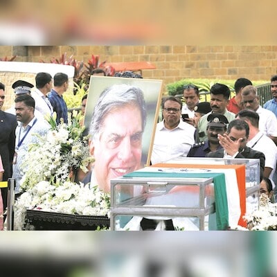 Industrialists, politicians, film stars, Tata group employees, friends, family members and admirers—running into thousands–queued up at the National Centre of Performing Arts (NCPA) at Nariman Point since Thursday morning to pay their last respects to Ratan Tata, 86. The patriarch and chairman emeritus of the salt-to-software conglomerate passed away late Wednesday night at Mumbai’s Breach Candy Hospital, where he was admitted in the wee hours of Monday.