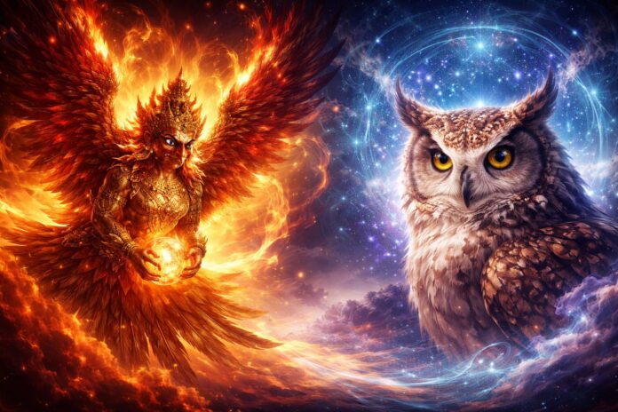 Garuda teaches us to move swiftly through illusion.The owl teaches us to listen before acting.