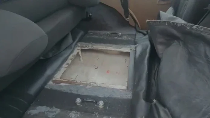 A video clip released by the authorities shows the cleverly constructed secret chamber carved into the vehicle’s interior, designed to conceal the precious metal.