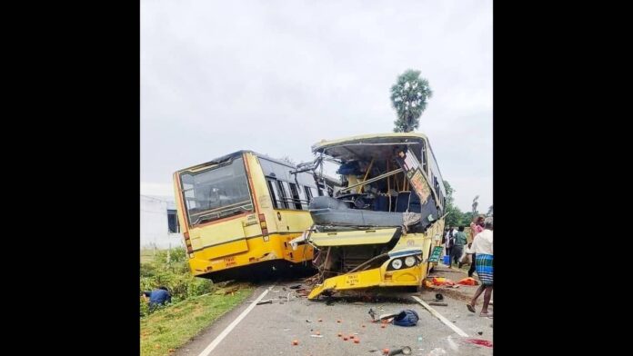 Chennai: At least seven people lost their lives and around 40 others were injured after two government buses collided head-on near Thirupathur in Tamil Nadu on Sunday, said police. Reportedly, the horrific accident took place when one of the buses involved in the accident was hea